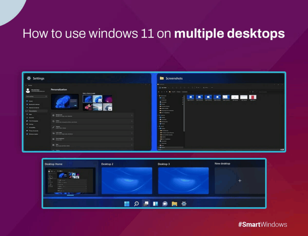 Para organizar melhor suas tarefas, crie áreas de trabalho virtuais distintas para trabalho, estudos ou lazer. Use o atalho Windows + Tab para gerenciar suas áreas de trabalho.